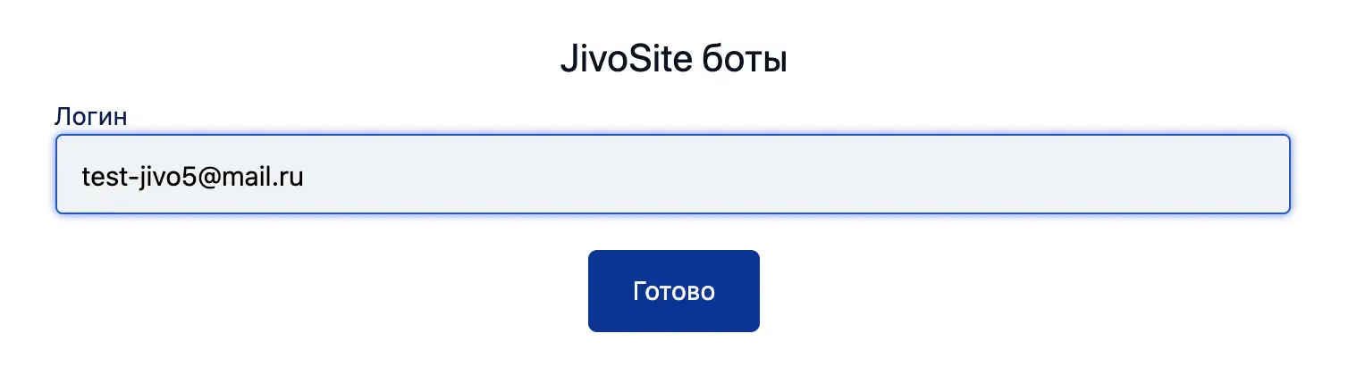 В появившемся модальном окне вставьте ваш логин от Jivo и нажмите "Готово".