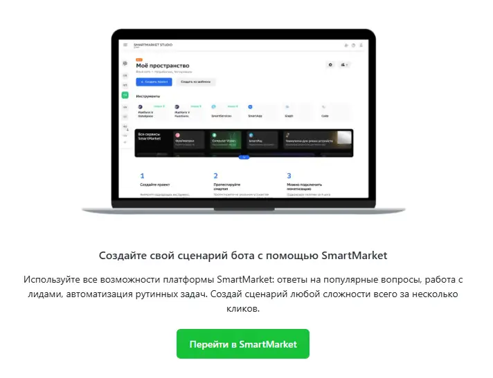 По всем вопросам относительно настройки сценария бота — напишите в поддержку SmartMarket.