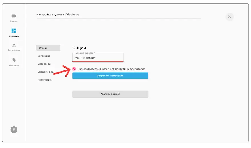 2. Придумайте название виджета. Поставьте галочку, если не хотите чтобы виджет было видно, когда операторов нет онлайн: