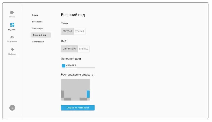 4. Настройте внешний вид виджета. Чтобы на сайте он выглядел гармонично, рекомендуем взять такие же цвета, как у виджета Jivo: