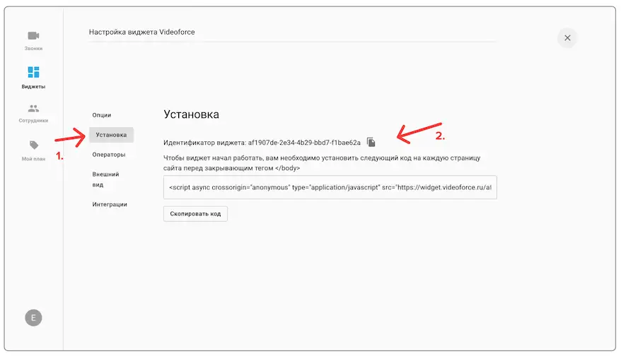 5. Зайдите во вкладку "Установка" и скопируйте ID виджета, он понадобится для включения интеграции в панели управления Jivo: