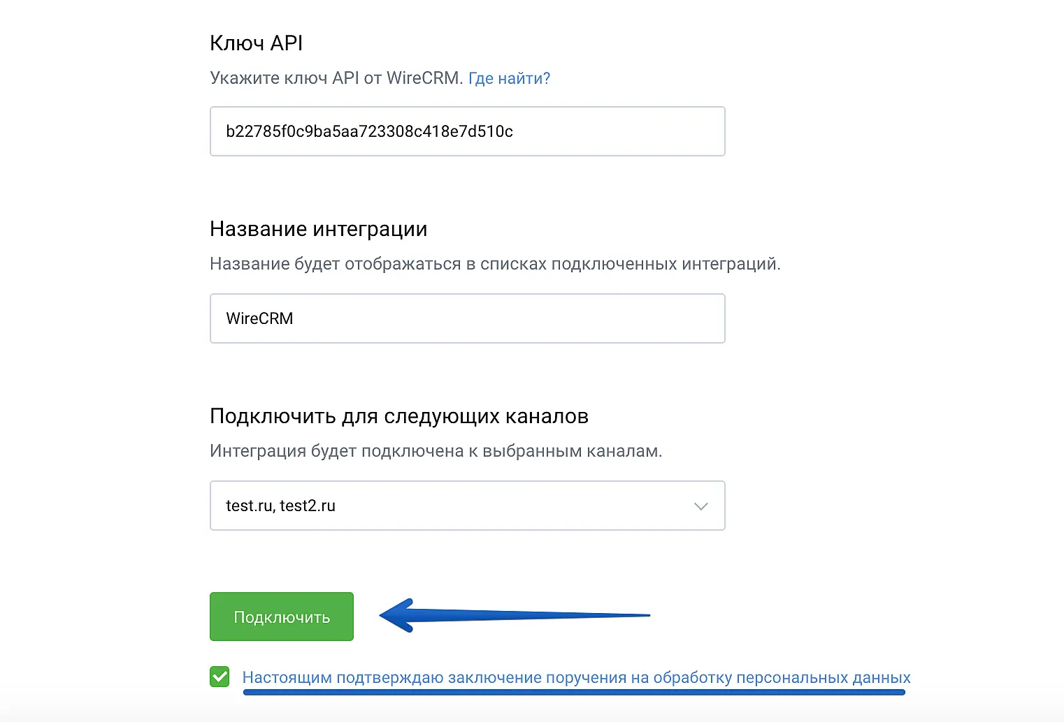 Поставьте галочку в знак подтверждения вашего согласия на обработку персональных данных и нажмите на кнопку "Подключить".