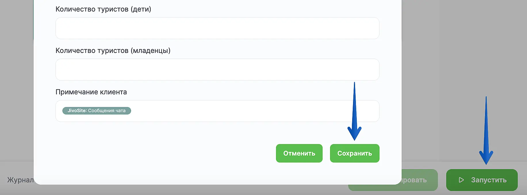 Теперь при завершении диалога в Jivo в U-ON.Travel произойдут следующие события: