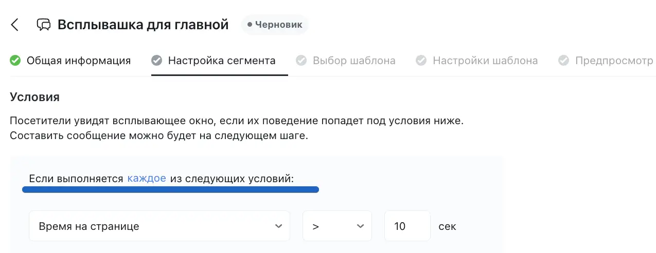 При создании интерактивных сообщений и всплывающих окон в разделе "Маркетинг" важно правильно настроить сегмент, для которого кампания будет срабатывать. В этой статье рассмотрим каждое из условий.