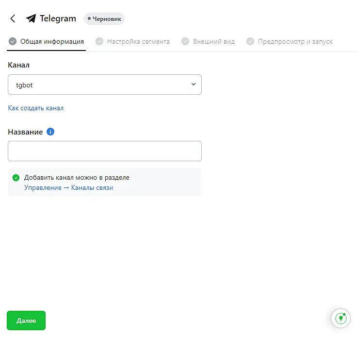 Важно: сменить канал отправки не получится.