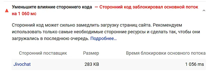 Итог: с точки зрения сервисов тестирования Jivo замедляет ваш сайт, с точки зрения посетителя — нисколько не замедляет.