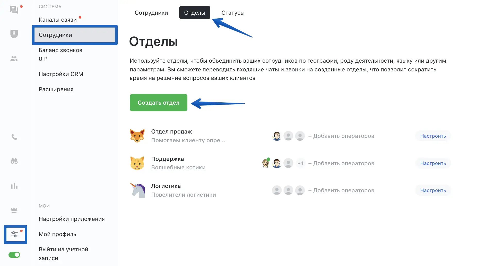 В нашей Базе знаний есть подробная инструкция по добавлению отделов.