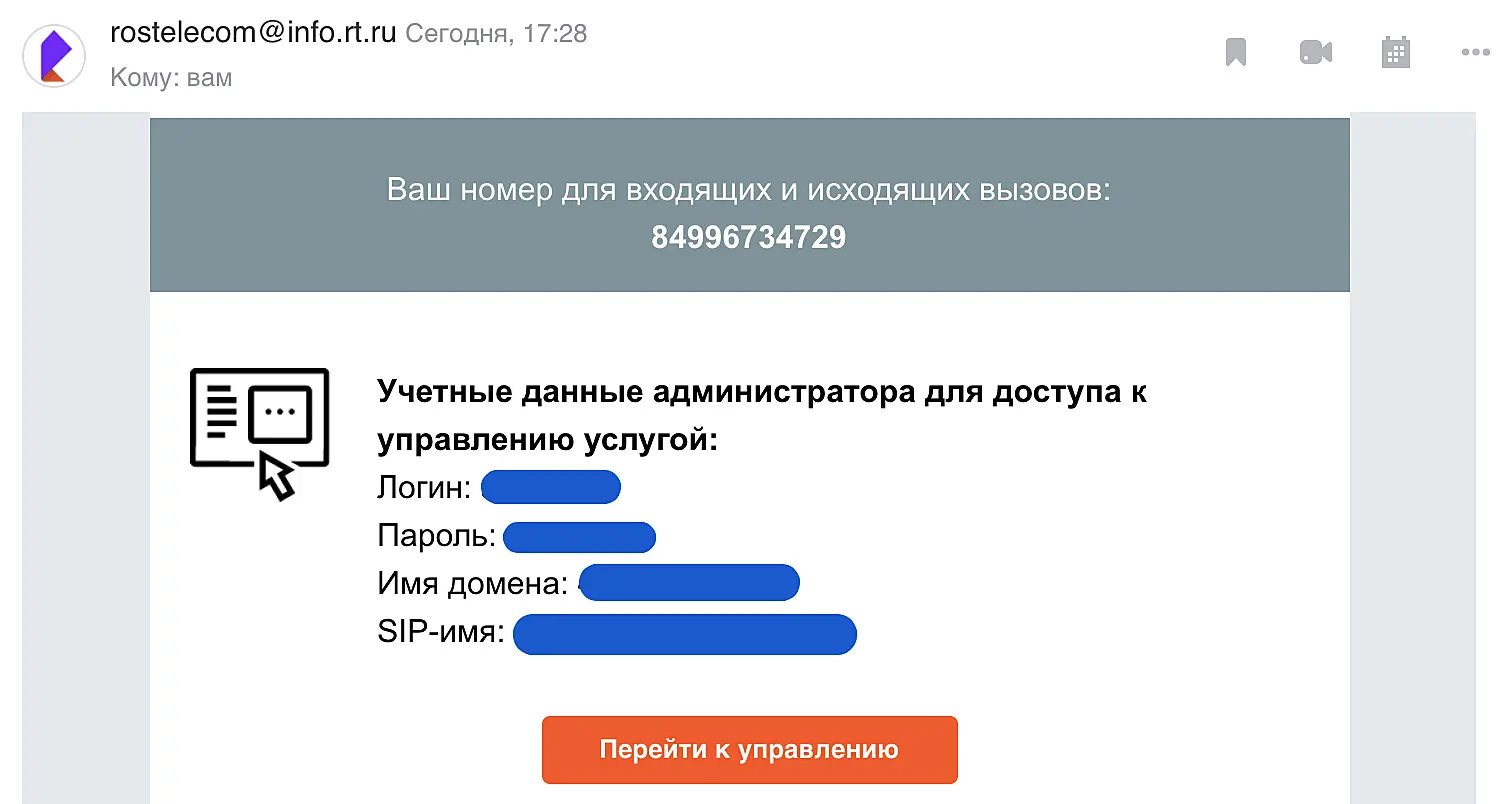 1. Откройте письмо, которое пришло после регистрации в телефонии Ростелеком: