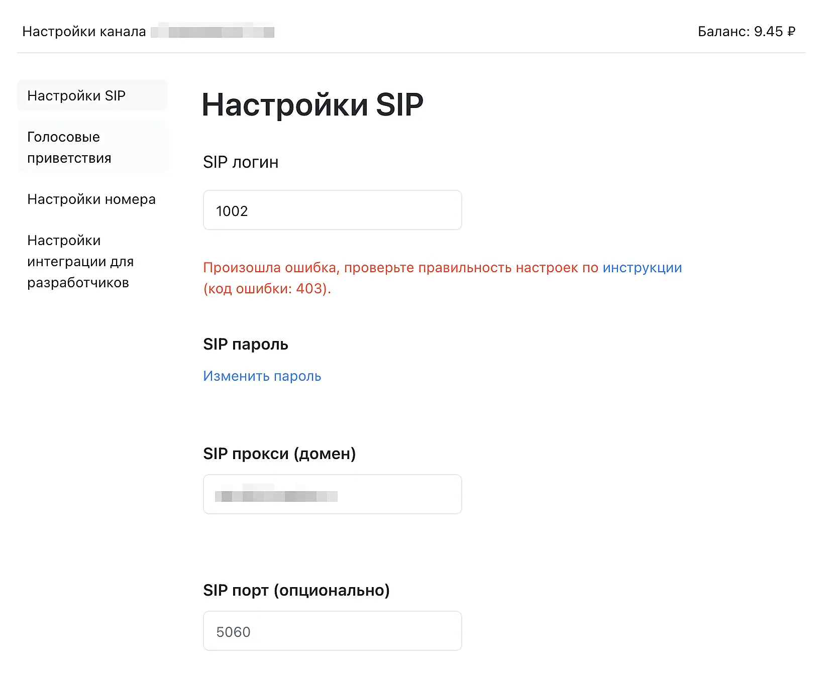 2. Введите настройки SIP, которые вы получили от вашего текущего оператора.