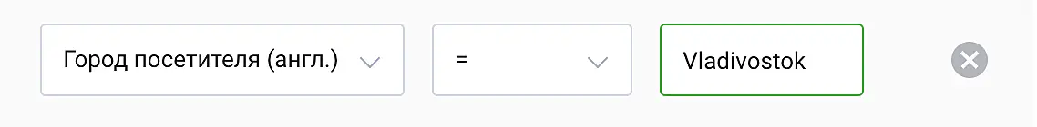 В настройках автоматических действий выберите "Город посетителя" и введите название города на английском: