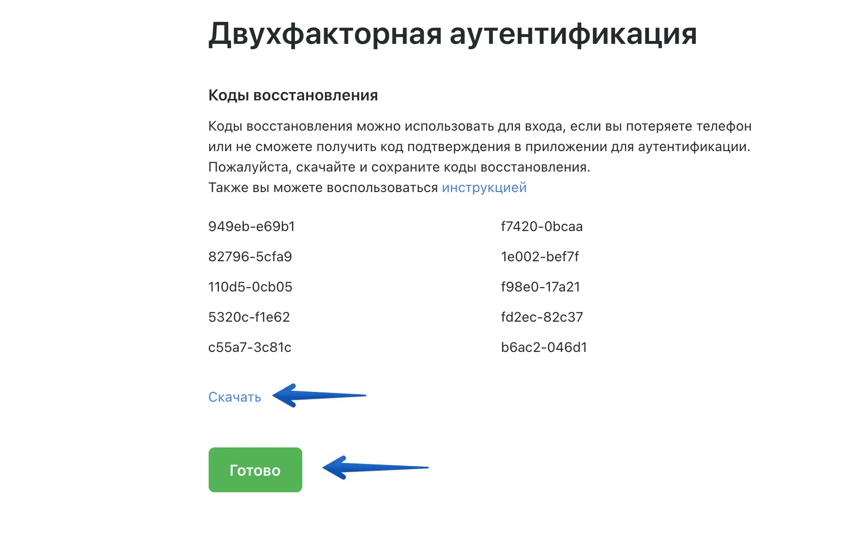 Скачайте список кодов и нажмите "Готово".