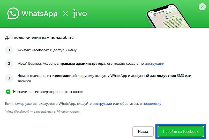 Подключение WhatsApp к Jivo