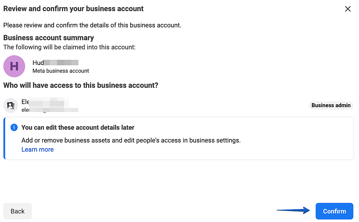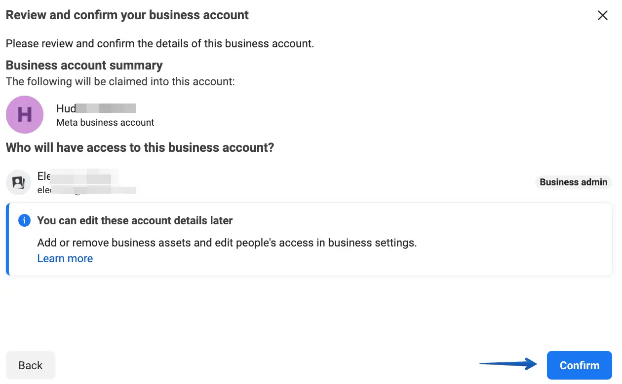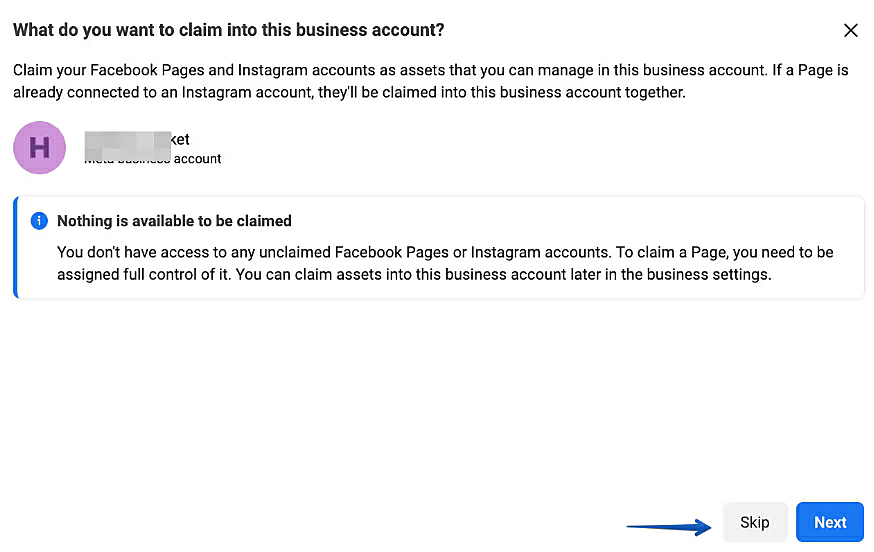 На следующих шагах вы можете добавить в ваш бизнес-аккаунт существующие аккаунты Facebook* или Instagram*, а также пригласить коллег. Это можно сделать позднее, нажав "Skip".