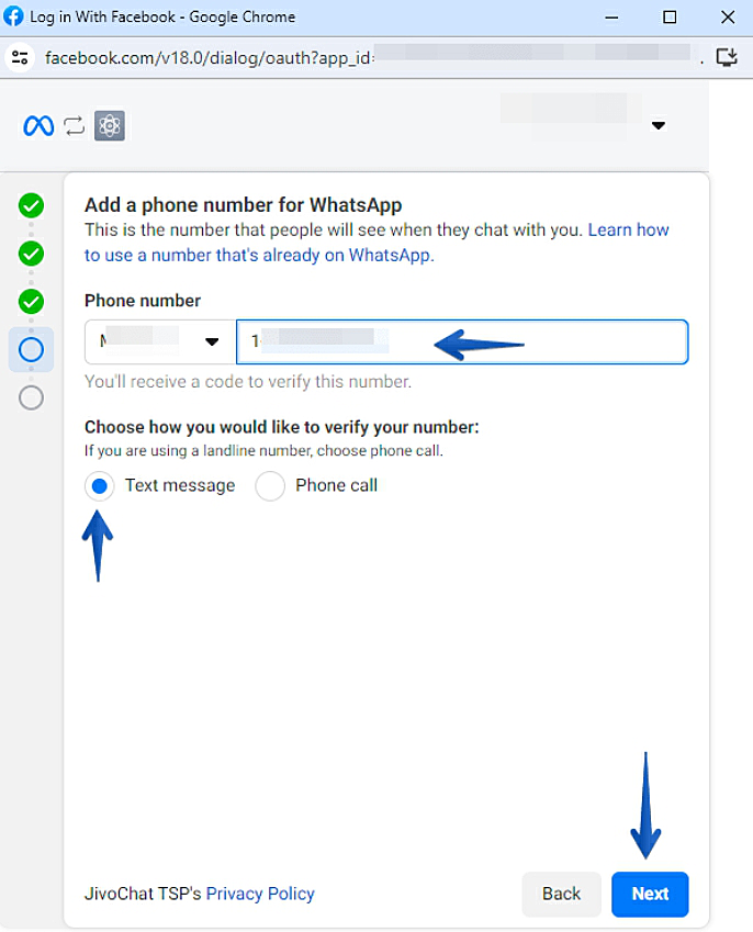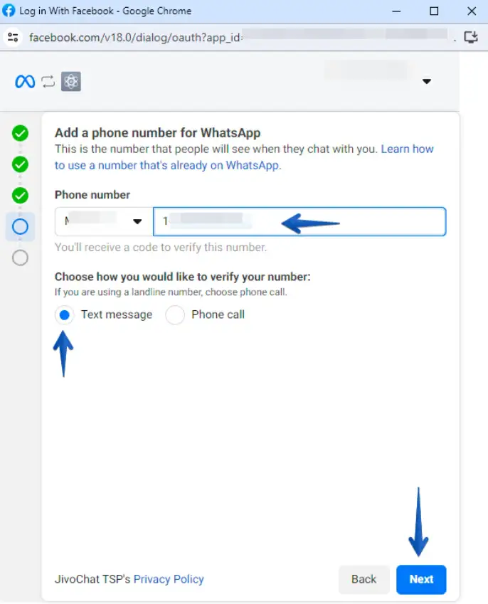 Обратите внимание: Номер, который будет использоваться в Meta(*) Бизнес-портфолио, не должен быть подключен к другому аккаунту WhatsApp, а также на нем должна быть возможность получать СМС или звонки (если у вас городской номер).