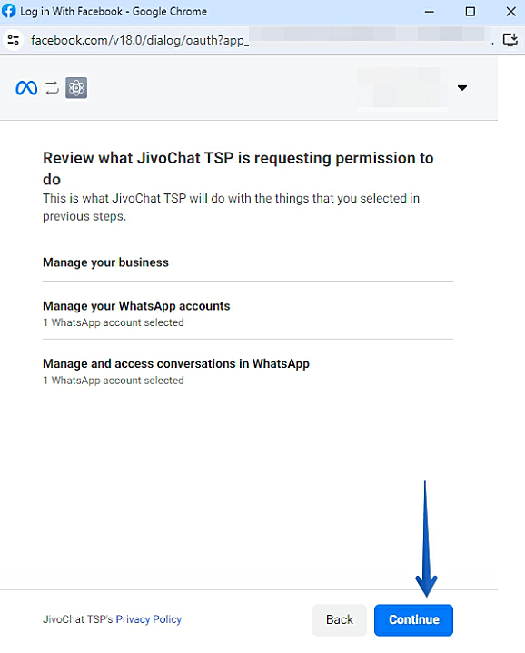 Нажмите "Continue" для подключения интеграции.