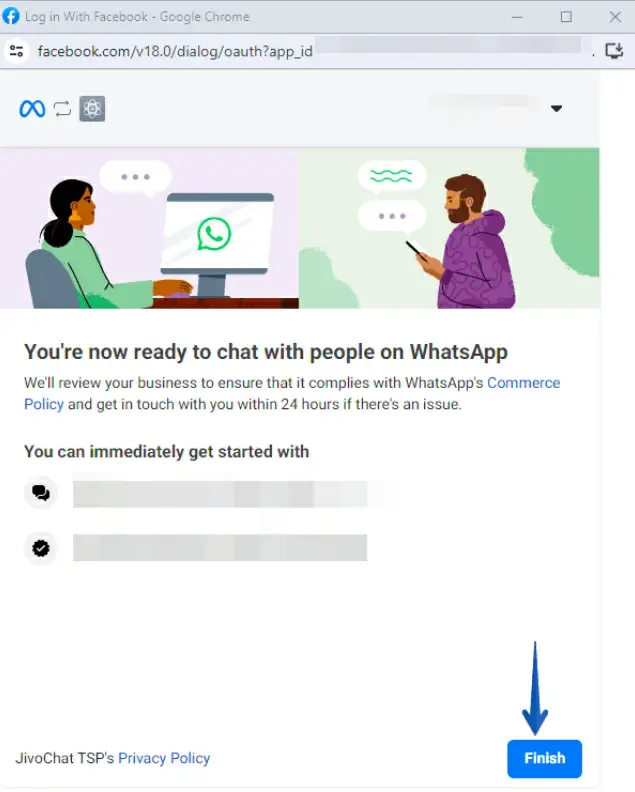 Убедитесь, что всё работает, отправив сообщение в WhatsApp на ваш бизнес-номер. Оно должно появиться в приложении Jivo в разделе "Диалоги" > "Входящие".