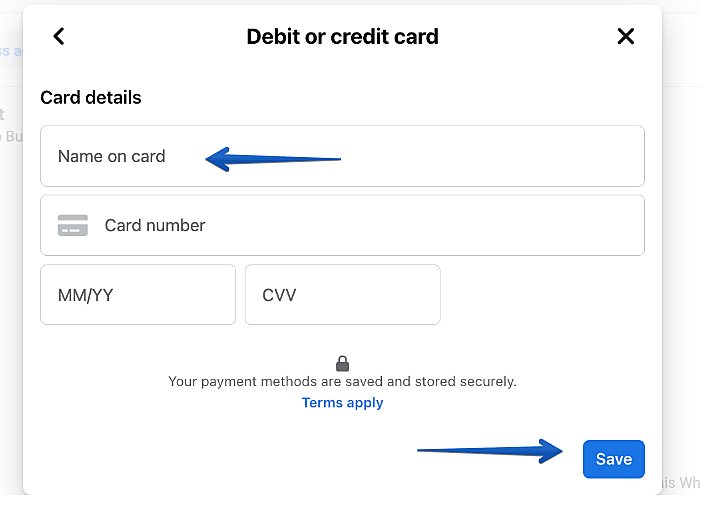 В открывшемся окне укажите страну и валюту оплаты, заполните данные карты и нажмите "Save".