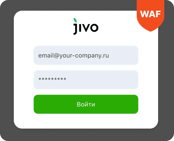 Сервис Jivo обеспечивает защиту от большинства опасных угроз безопасности при помощи активного файрвола (Web Application Firewall). Включена как полностью автоматическая, так и полуавтоматическая система защиты и реакции на возникающие угрозы безопасности.