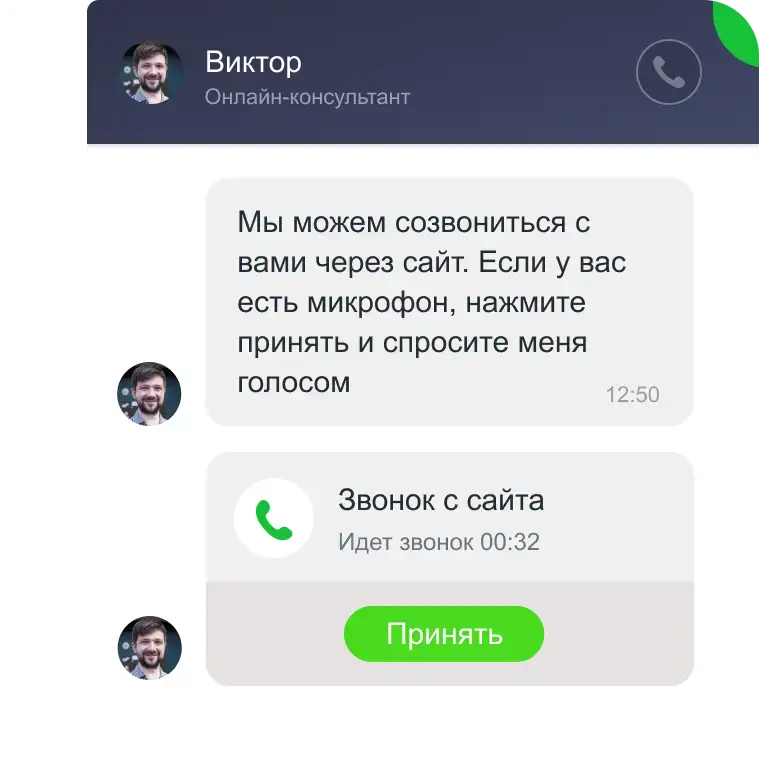 Общайтесь с посетителями голосом прямо через виджет на сайте. Это позволит быстрее объяснить преимущество вашего предложения
