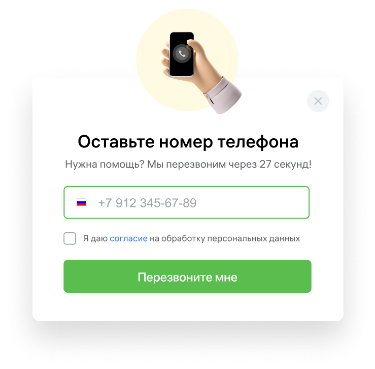 Больше звонков до 87%. Собирайте больше целевых лидов с помощью новой всплывающей формы. Новая форма обеспечивает рост обращений до 87%
