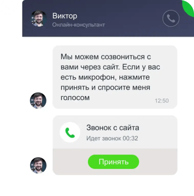 Общайтесь с посетителями голосом прямо через виджет на сайте. Это позволит быстрее объяснить преимущество вашего предложения