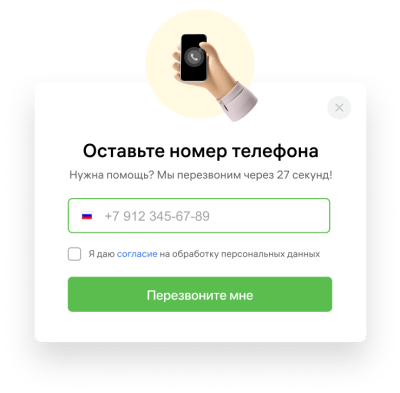 Больше звонков до 87%. Собирайте больше целевых лидов с помощью новой всплывающей формы. Новая форма обеспечивает рост обращений до 87%